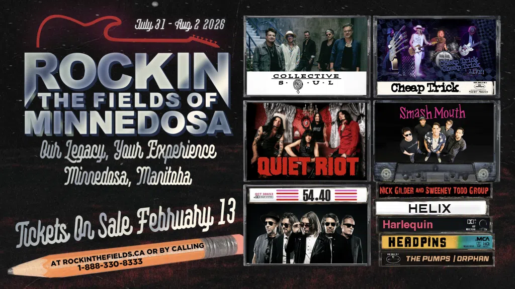 Rockin’ The Fields of Minnedosa is coming up July 31st to August 2nd! Join Collective Soul, Cheap Trick, Quiet Riot, Smash Mouth and more at the festival!